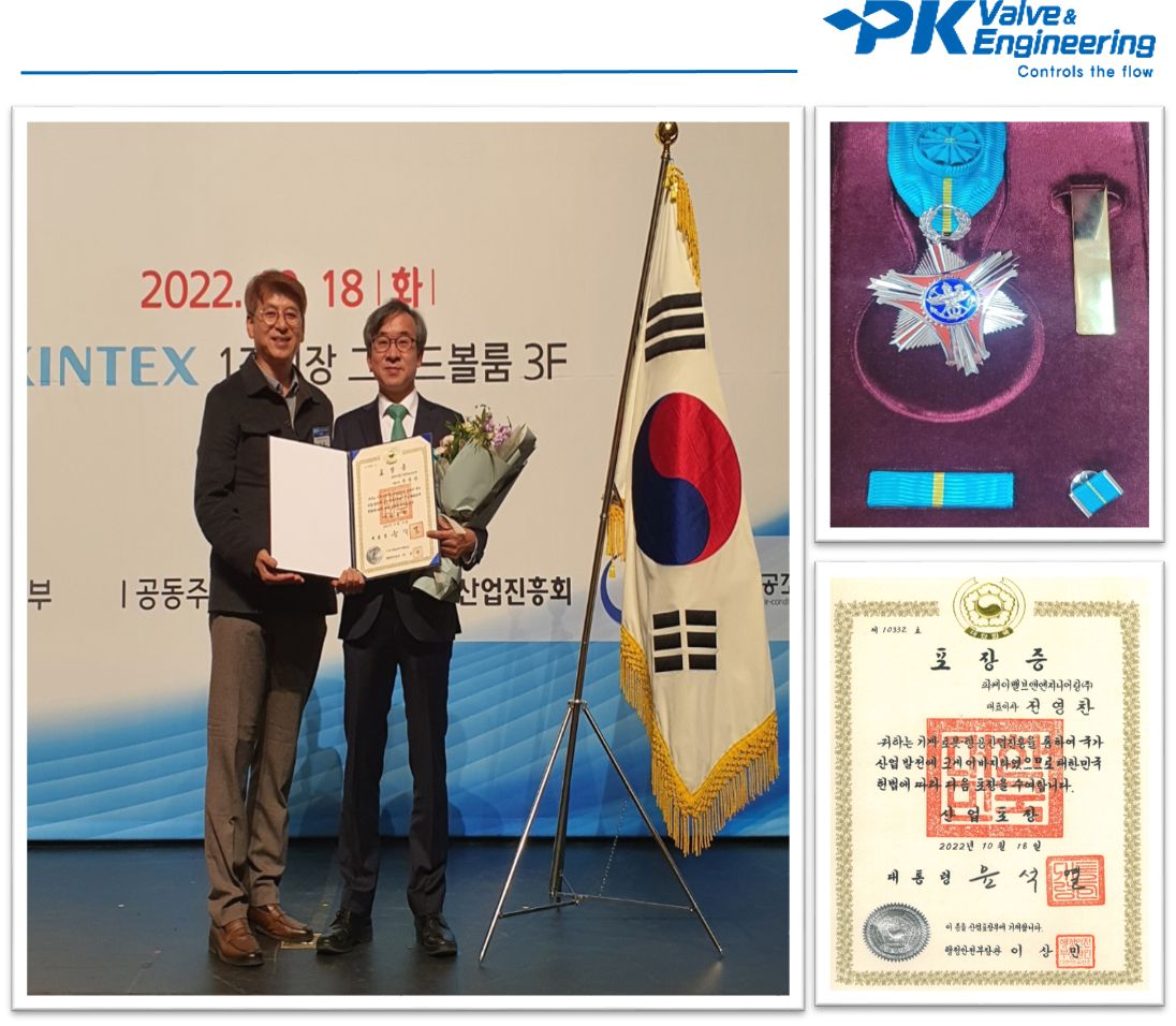 We all are very motivated by news that Mr. Young Chan, Chun, CEO of PK Valve & Engineering honorably received an Industrial Service Medal and its Badge from the South Korean President in the Digital Transformation Fair 2022 in recognition of a big contribution to development of national economy by continuous promotion of Digital Manufacturing, Smart Factory/Automation/Robotics and Aerospace Industry.