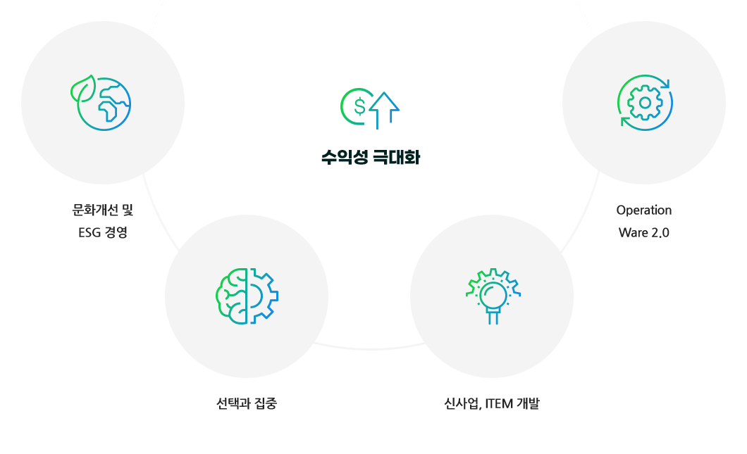 수익성 극대화 - 문화개선 및 ESG 경영/선택과 집중/신사업, ITEM 개발/Operation Ware 2.0